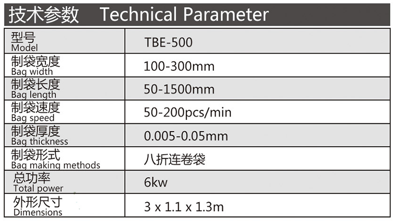 機器特性 此設備為生產連卷八折背心垃圾袋的專用設備,單通道高速無拉伸操作簡便,底封好,收卷整齊,個數準確,手動手卷。此設備采用全鋼板一體而成,用電220v照明電即可。